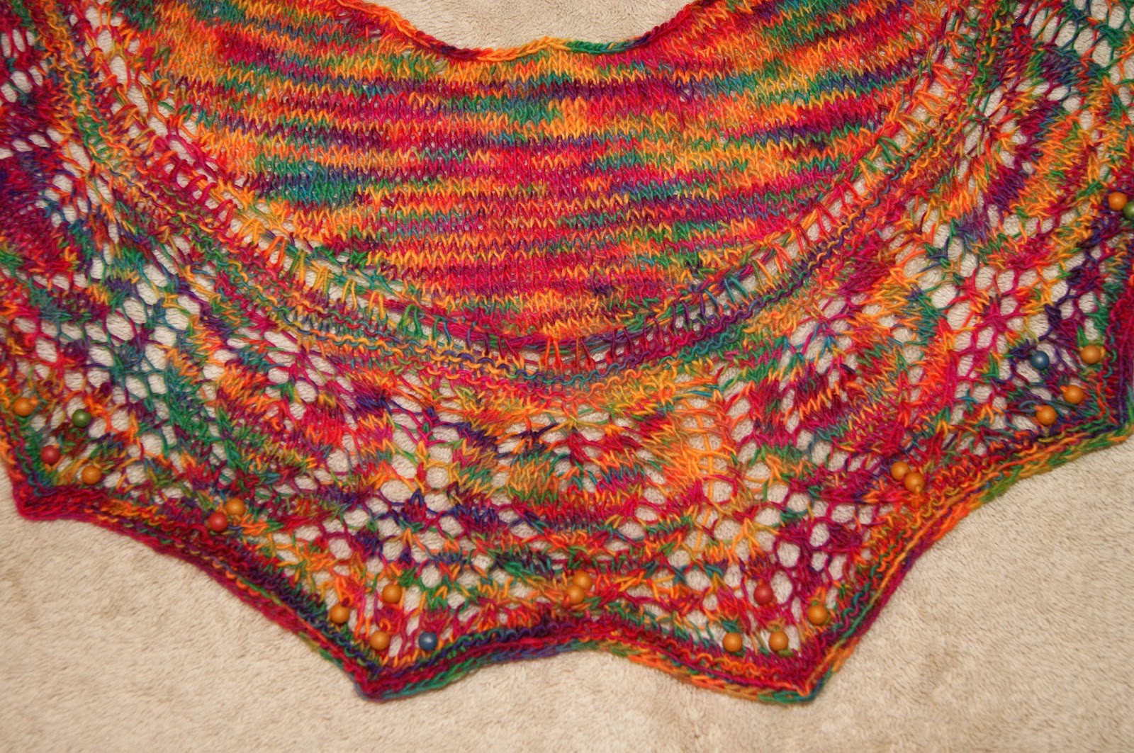 Oh, what I also wanted everyone in San Diego to know: there is a small yarn store in La Mesa named YARN and THREAD EXPRESSIONS, 7882 La Mesa Blvd., that actually carries Zitron yarn. When I visited the store for the first time, just about a month ago, I found a few skeins of the Filigran lace weight in the store. I have noticed and remember. It was not the colorful version that I have used, but the yarn is available and someone might want to make this Fichu-shawl in a more green/yellow/orange version.